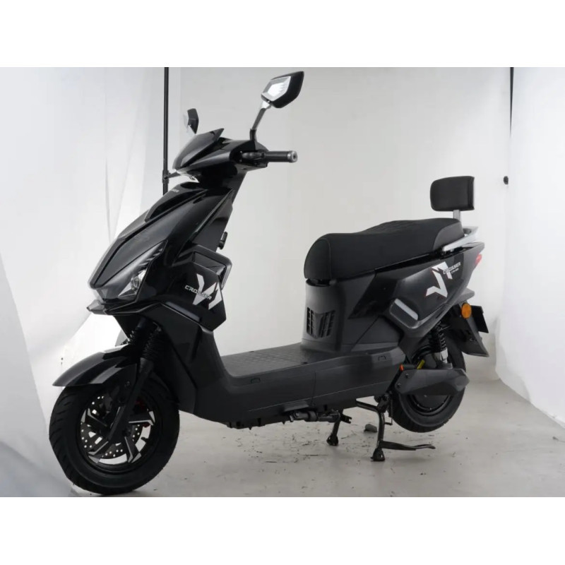 Crosser CR-23 2025 з мотором 2500 Вт. Оснащений мотор-колесом і тяговим акумулятором 72В/23Ач. Максимальна швидкість до 75-80 км/год. Орієнтовний пробіг на одному заряді до 60 км.